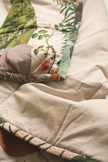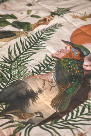Brand-new bedspread with a fabric flaw visible in the photo. The defect occurred at the printing stage but was only noticed after the product was sewn.