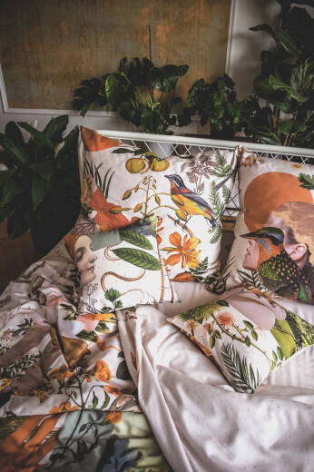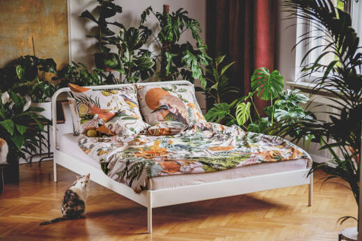 Każdy nasz wzór to inna historia. W każdym ukryte są inne niespodzianki. Kierując się jednak zasadą less-waste staramy się ograniczać ilość odpadów produkcyjnych do minimum, dlatego każdy z naszych produktów wykrojony jest z innego miejsca na wzorze. Bardzo trudno jest więc znaleźć dwie identyczne poszewki na poduszki, czy obrusy na których charakterystyczne elementy znajdują się dokładnie w tym samym miejscu.